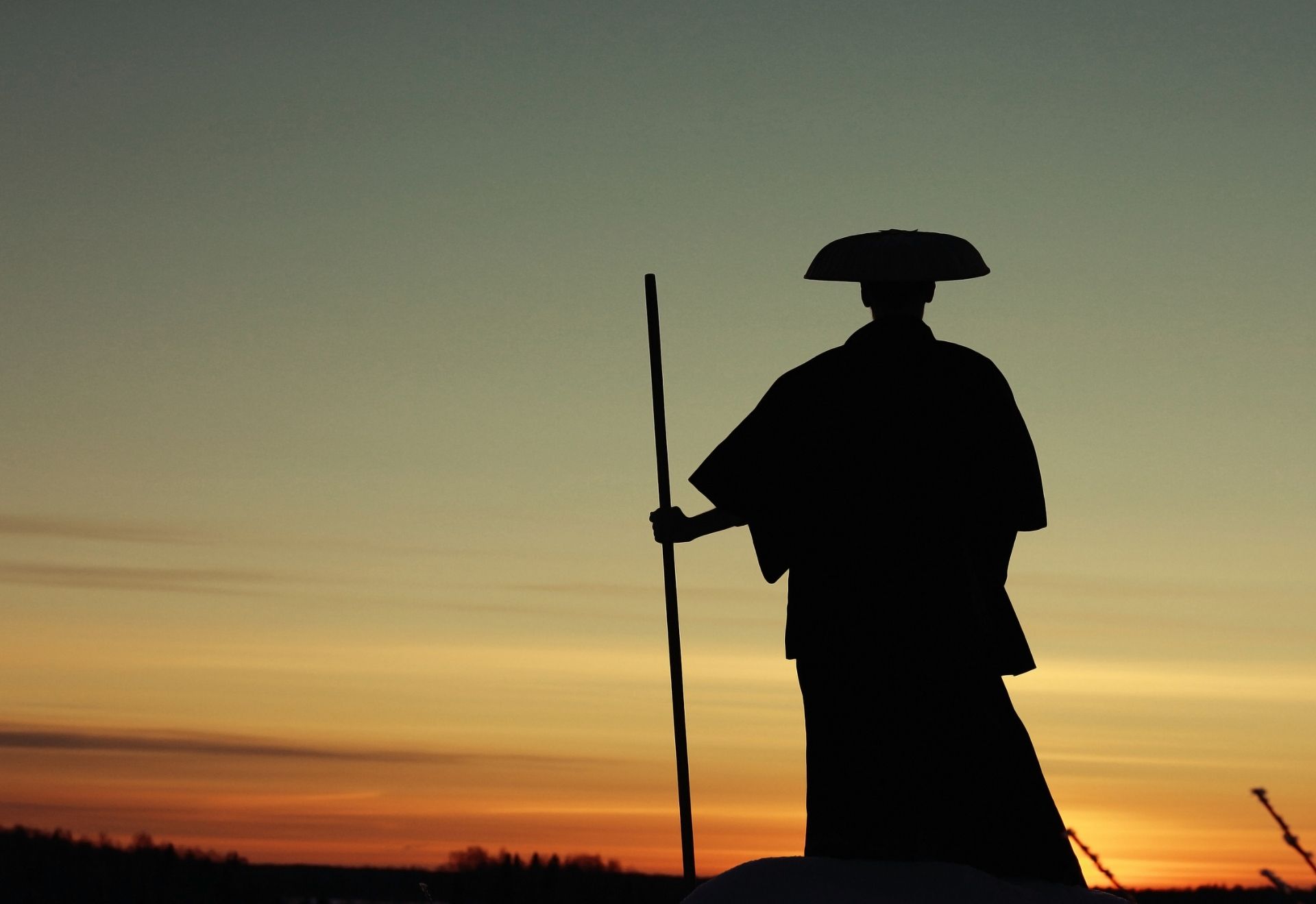 見えてきたのは、茶色い袈裟のようなものを着て笠を被った男性僧侶です。